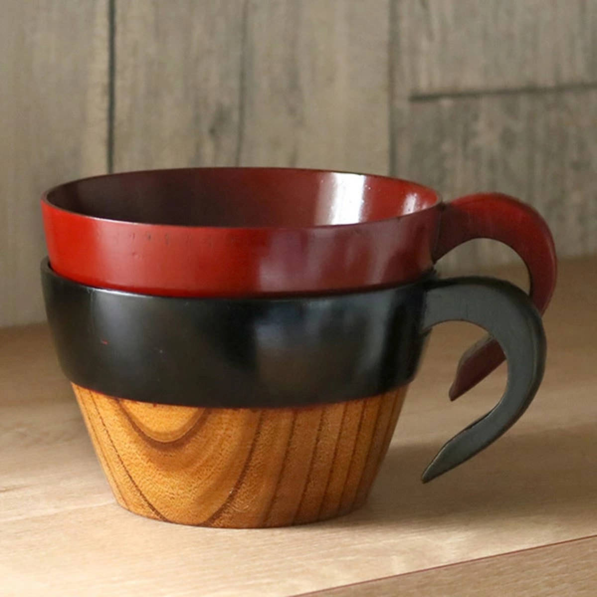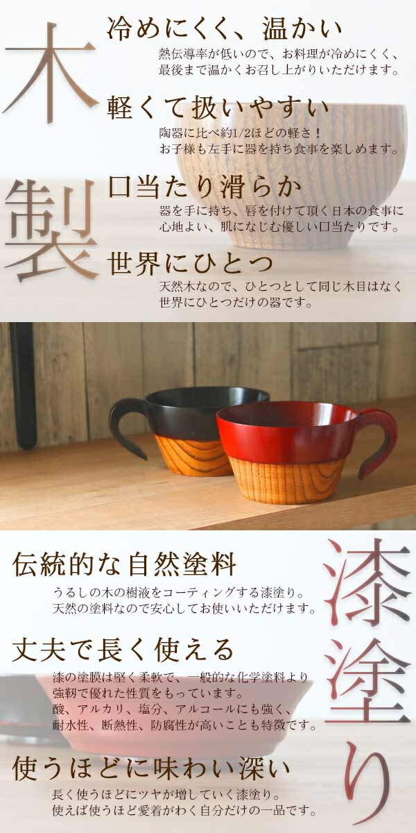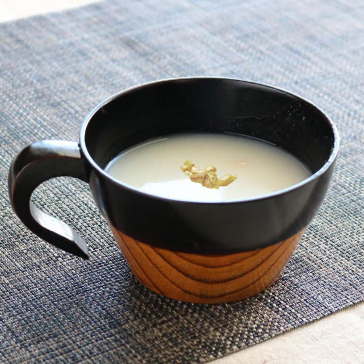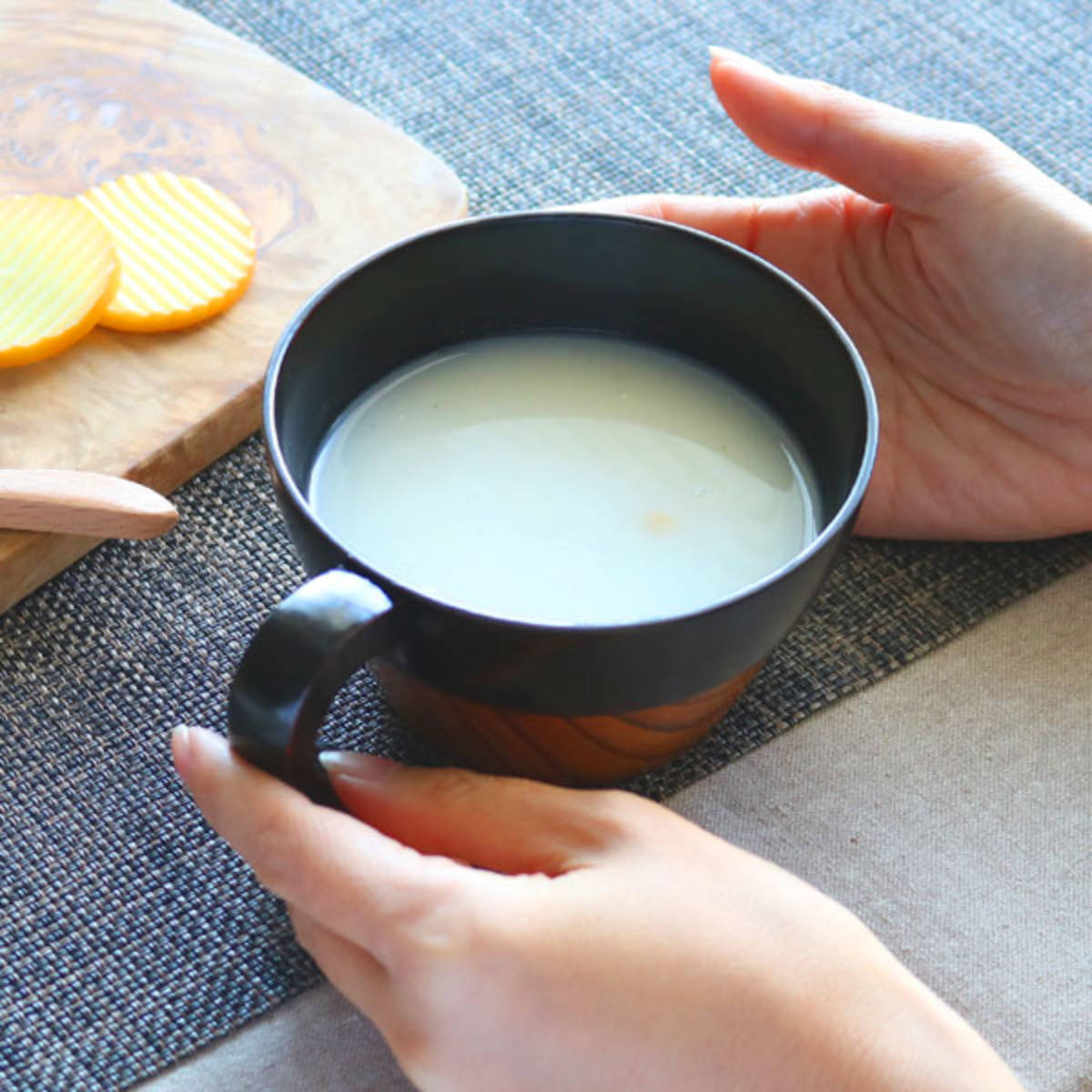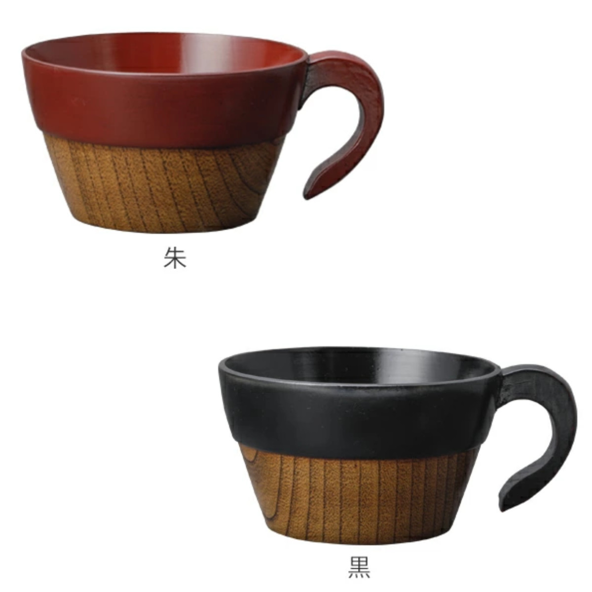 スープカップ 350ml 漆 ツートン 木製 ( 食器 天然木 スープマグ お椀 椀 スープボウル 木目調 汁椀 スタッキング スープ スープ椀 カップ ボウル マグ 味噌汁椀 吸物椀 根来 曙 塗り 器 漆塗り 木製食器 和風 和食器 )