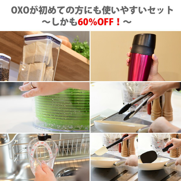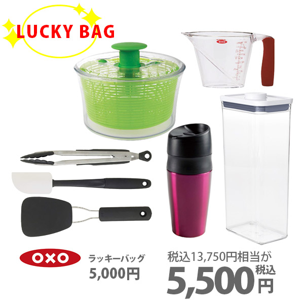 ●▼【ラッキーバッグ】 OXO オクソー 5,000円 クリアサラダスピナー、アングルドメジャーカップ、キッチンツール3ピースセット、ポップコンテナ2レクタングルトール、ミニトラベルマグ【アウトドア キャンプ セット キッチン】