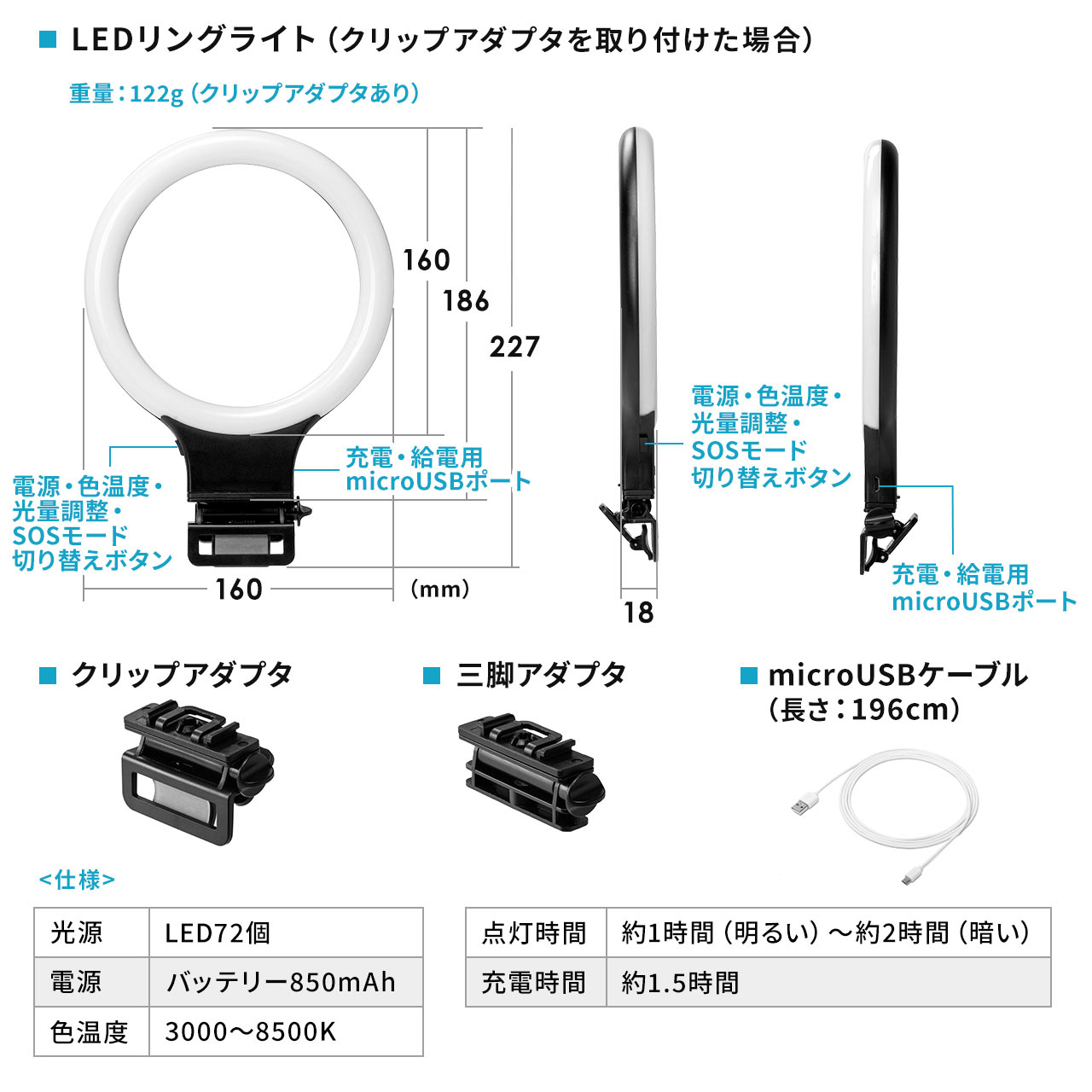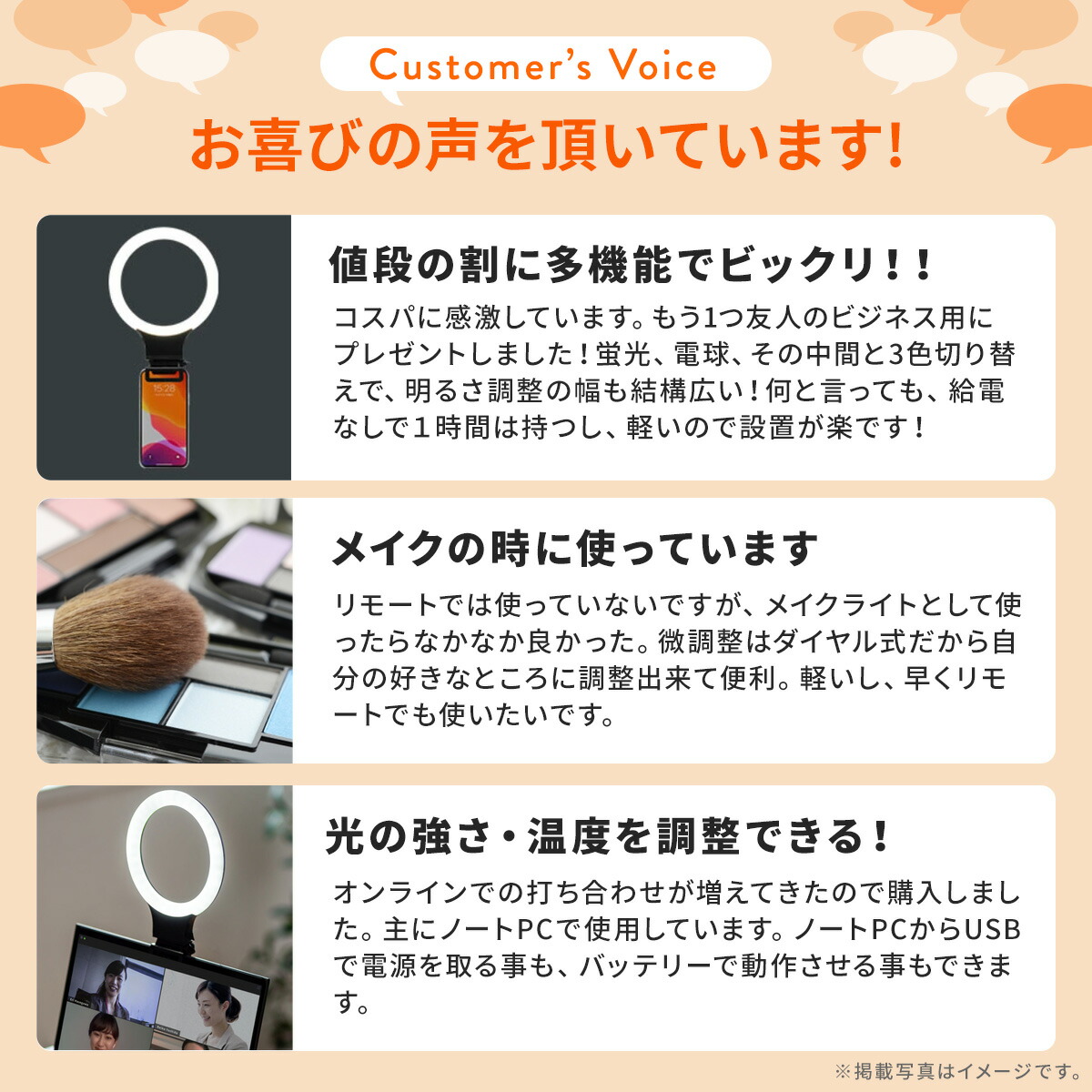 【楽天1位受賞】LEDリングライト 自撮り スマホ/タブレット取付 クリップ 色温度調整 三脚取付対応 オンライン授業 Zoom テレワーク youtuber