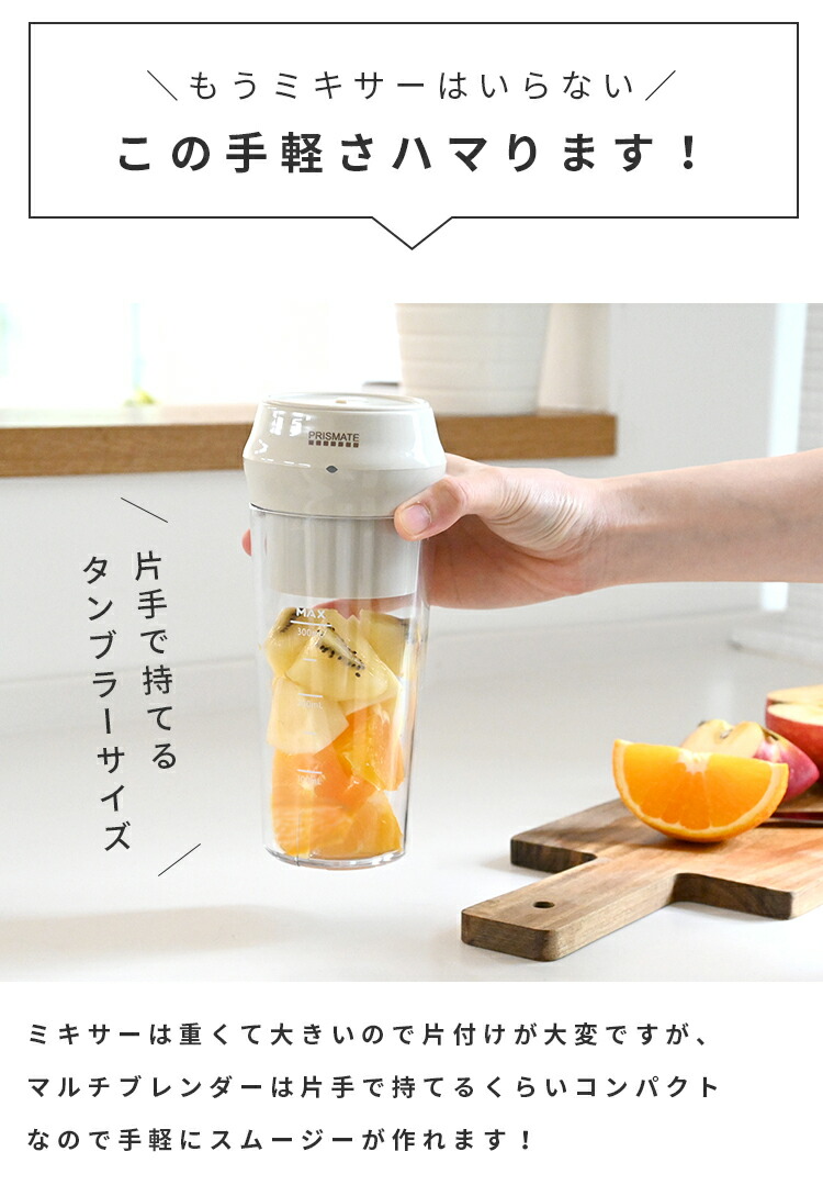 ミキサーいらず!いつでもどこでもスムージーが楽しめるポータブルマルチブレンダー。コードレスだしコンパクト。人にもプレゼントしたくなるね!