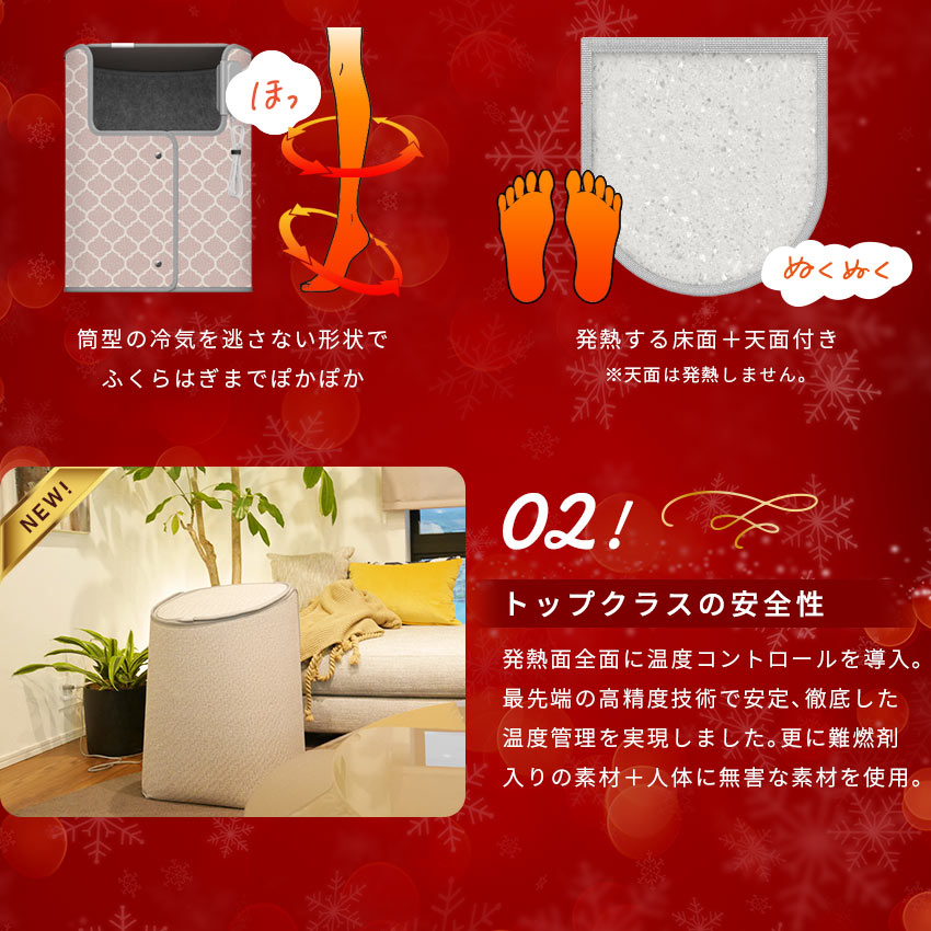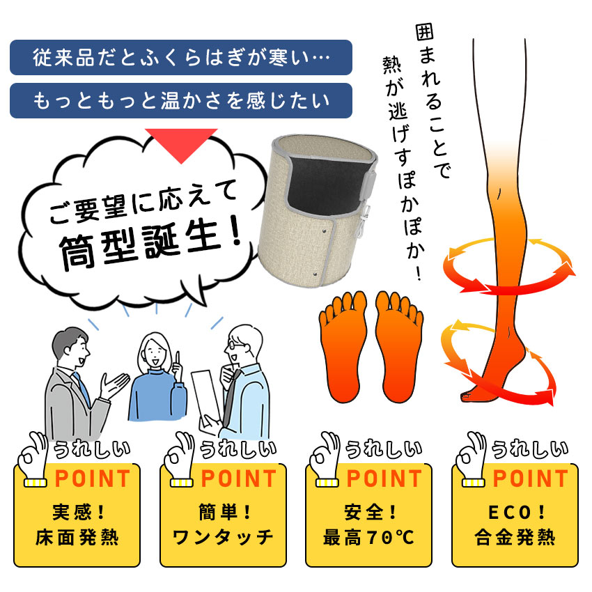 360°温かい🔆 ふくらはぎまでポカポカ💛 筒状の冷気を逃さない形状👏 発熱する床面➕天面付きでぬくぬく⭕️