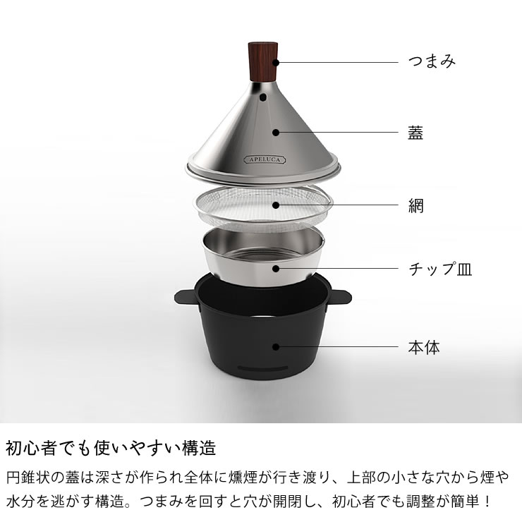 APELUCA(アペルカ)テーブルトップスモーカー燻製器 燻製機 卓上 自家製 クリスマス クリスマスプレゼント レシピ付き スモークチップ付き スモークウッド付き くんせい おつまみ アウトドア キャンプ コンパクト パーティ 巣ごもり ステイホーム 家のみ 軽量