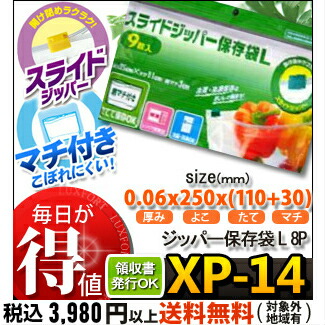 システムポリマー XP-14 スライダー付ジッパー保存袋 L 9P(スライドジッパー保存袋L 9枚入 フリーザーバッグ キッチンバッグ スライドジッパー式 食品保存袋 チャック付きポリ袋 ジッパーバッグ ジッパー袋)【単】