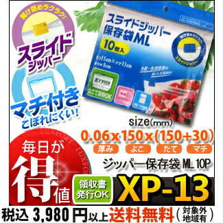 システムポリマー XP-13 スライダー付ジッパー保存袋 ML 10P(スライドジッパー保存袋ML 10枚入 フリーザーバッグ キッチンバッグ スライドジッパー式 食品保存袋 チャック付きポリ袋 ジッパーバッグ ジッパー袋)【単】