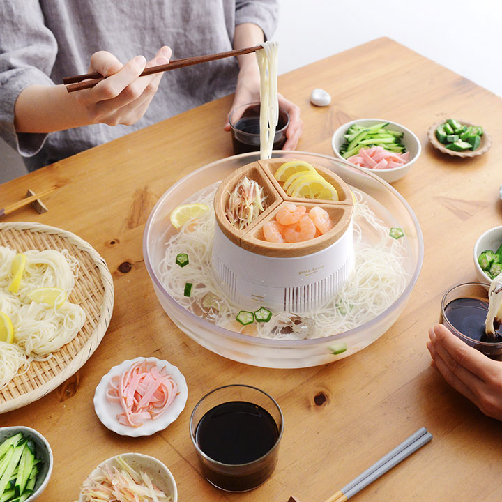 流しそうめん器/グリーンハウス/素麺 流しそうめん機 木目調 ファミリー コードレス 電動 ホワイト グレー 大人数 家庭用 おしゃれ かわいい そうめん 電池式 お家パーティ トレー付き ウッド【★】