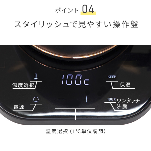 温度調節OK!電気ケトルでは珍しい細口スリムノズルのドリップ電気ケトル。 コーヒーやお茶を“ちょうどいい温度”で楽しめる温度調節&保温機能付き電気ケトル。 細口スリムノズルで湯量をコントロールしやすく、ドリップがとても快適に。 軽量で扱いやすく、空焚き防止・自動OFFの安心設計。 一人暮らしにもぴったりな小型サイズで、北欧風デザインがおしゃれにキッチンに映えます。 毎日のドリンクタイムがもっと楽しくなる便利アイテムです。 ʘʘ<