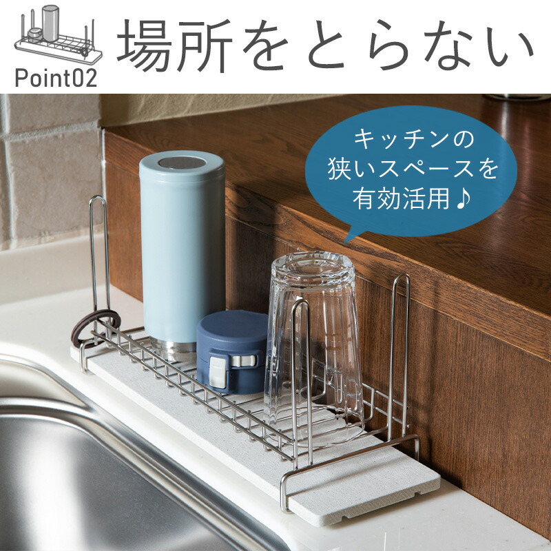 これいいね。水筒やグラスの専用の水切りラック欲しかった!水捨て不要だし◎
