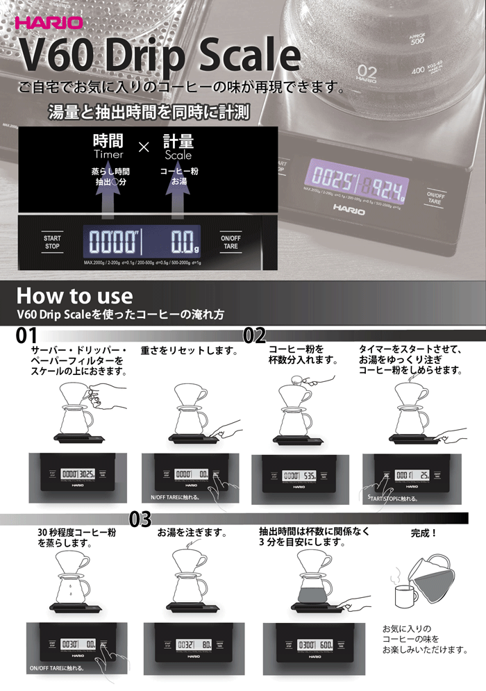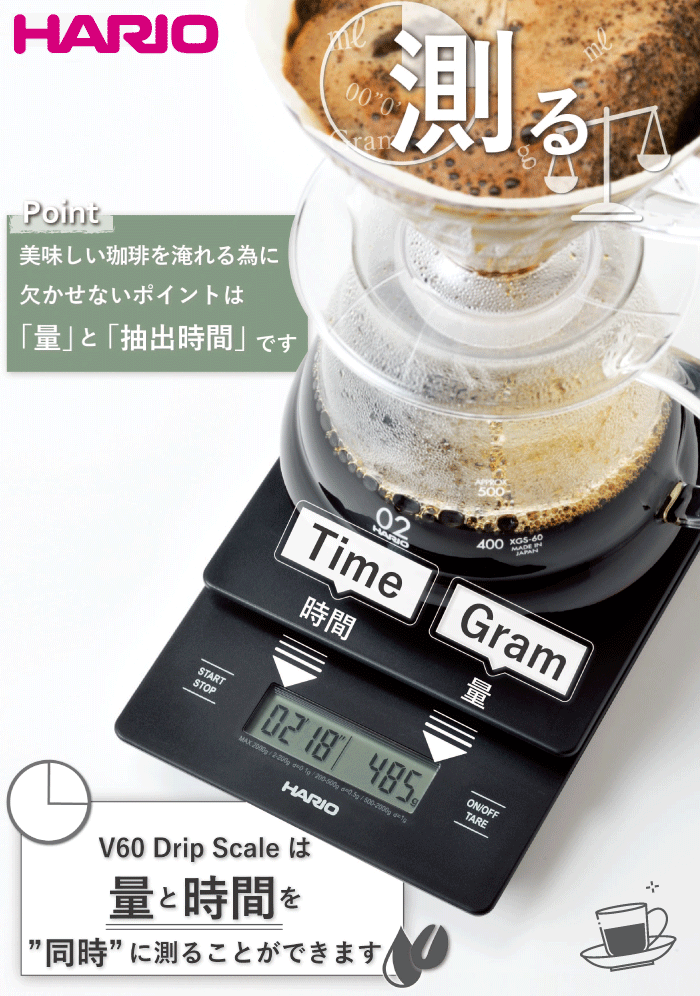 \最大1000円クーポン!/ HARIO ハリオ V60 「抽出量」と「抽出時間」を同時に計測できる ドリップスケール V60 メタル ドリップ スケール 計量 はかり コーヒー 珈琲 スケール ハンドドリップ コーヒー