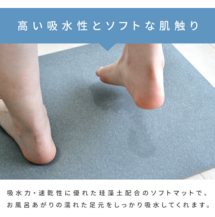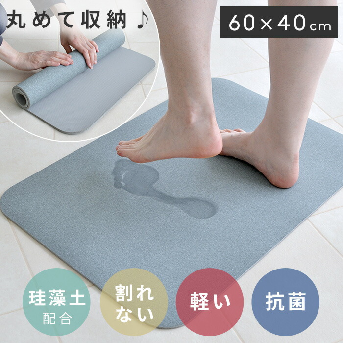 【10%OFF】珪藻土配合ソフトバスマット 60×40cm バスマット 抗菌 やわらかい 丸めて収納 吸水 速乾 珪藻土 バスマット 柔らかい 珪藻土マット ノンアスベスト ソフト クッション 速乾 足拭きバスマット 割れない 風呂 洗面所 脱衣所 軽い 玄関マット