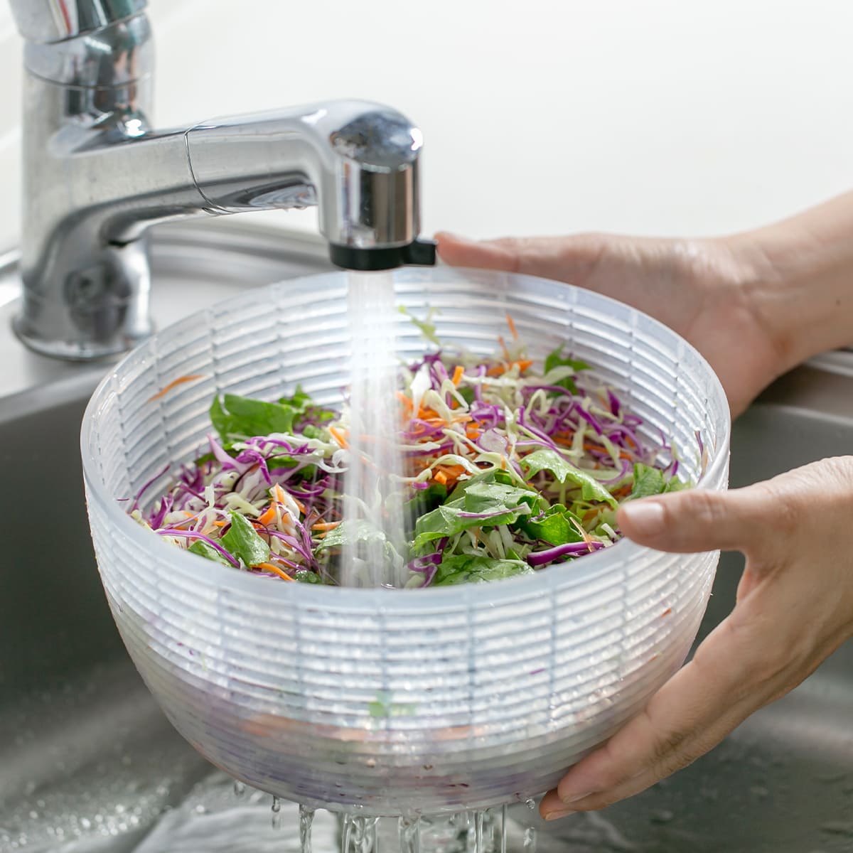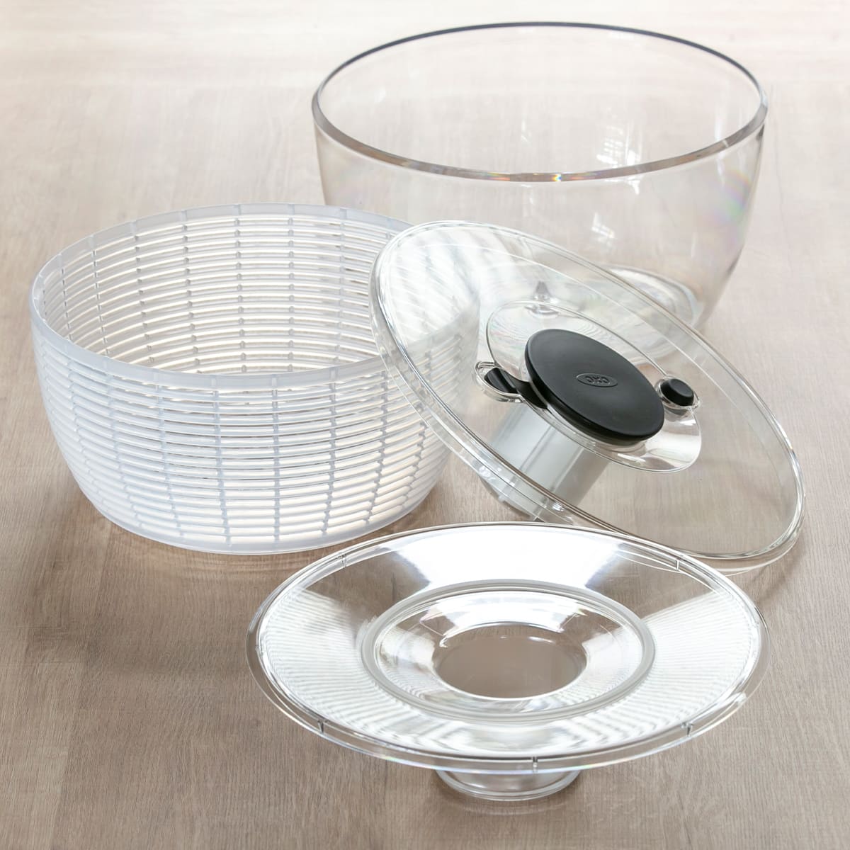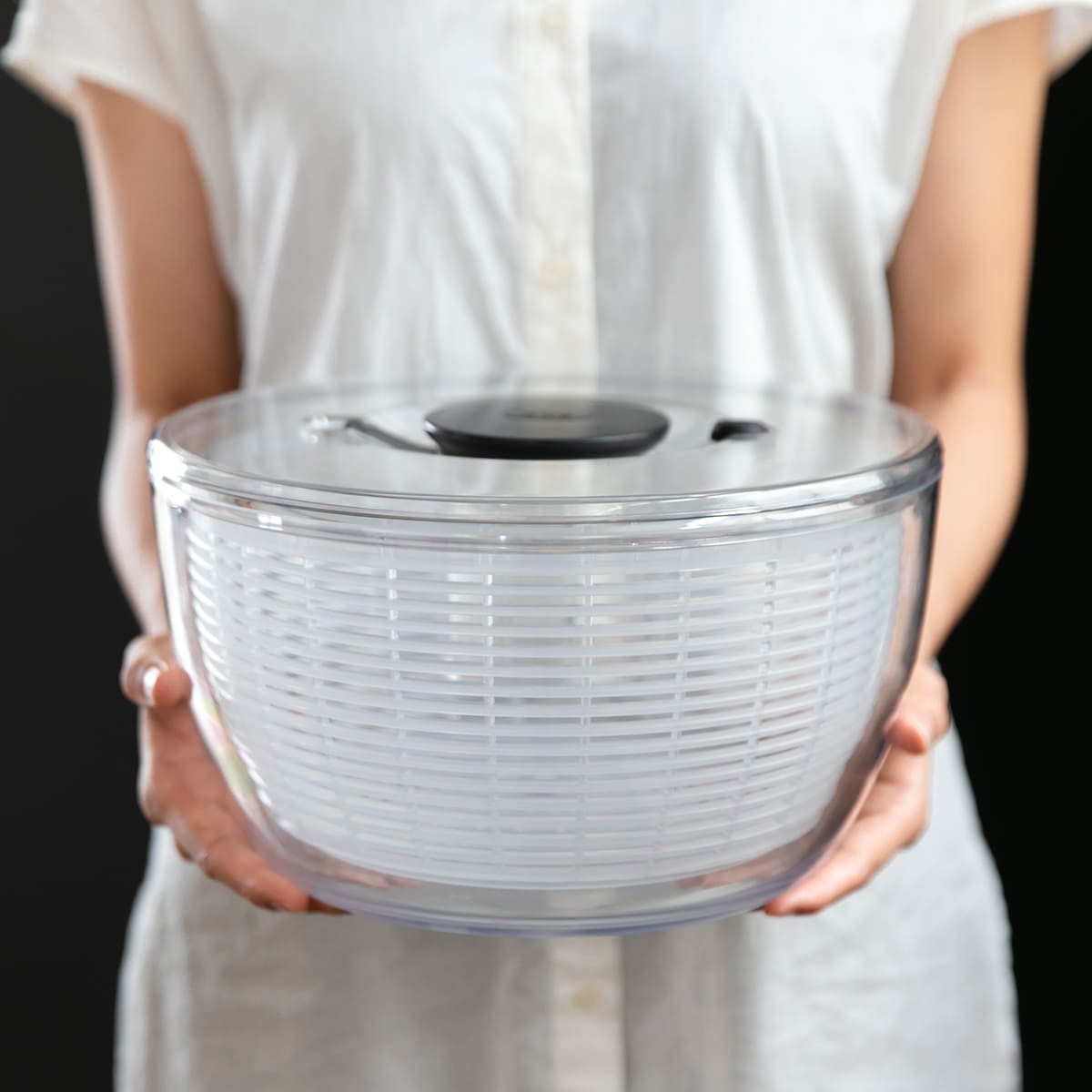 【レビュー特典付き】 OXO サラダスピナー クリア 大 食洗機対応 野菜水切り器 ( オクソー 野菜水切りかご スピナー 手動 滑り止め付き ボウル コランダー 分解 下ごしらえ用品 時短 便利グッズ キッチンツール )