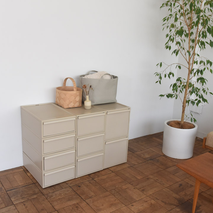 我が家でも使ってる衣装ケース。服以外のストック品なんかにも使ってるけど、カタチもスッキリしてるしイイですよー◎