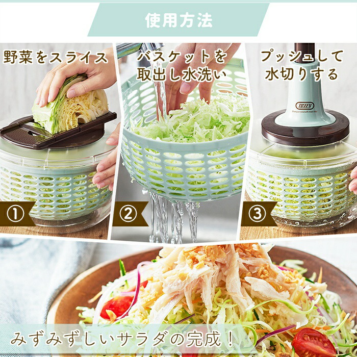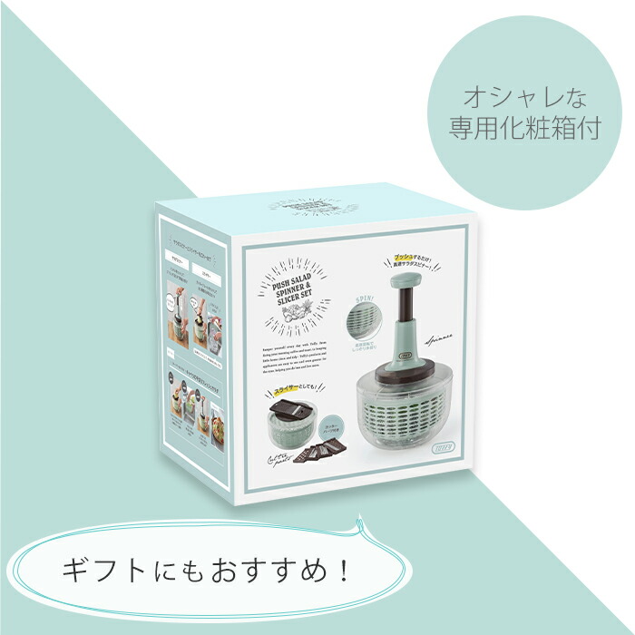 【365日出荷&当店限定特典付】toffy トフィー プッシュサラダスピナー&スライサーセット サラダスピナー コンパクト スライサー セット 千切り キャベツ プッシュ式 安全 K-HC10-PA キッチンツール 細切り レトロ ラドンナ