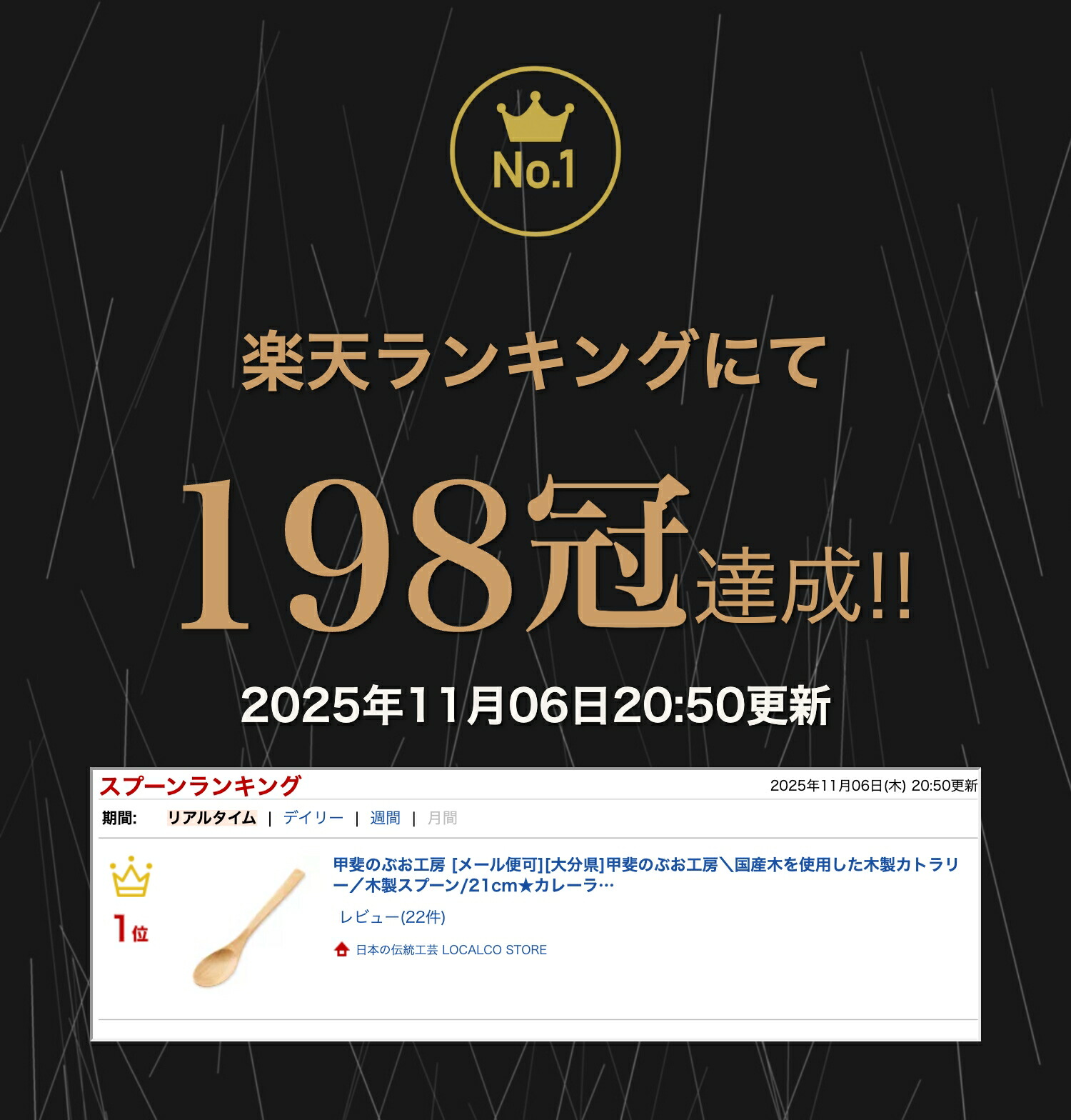 甲斐のぶお工房 [メール便可][大分県]甲斐のぶお工房\国産木を使用した木製カトラリー/木製スプーン/21cm★カレーライスに最適のスプーン★[メール便対応](木製/贈答品/木のスプーン/カフェスプーン/国産/日本産/職人)