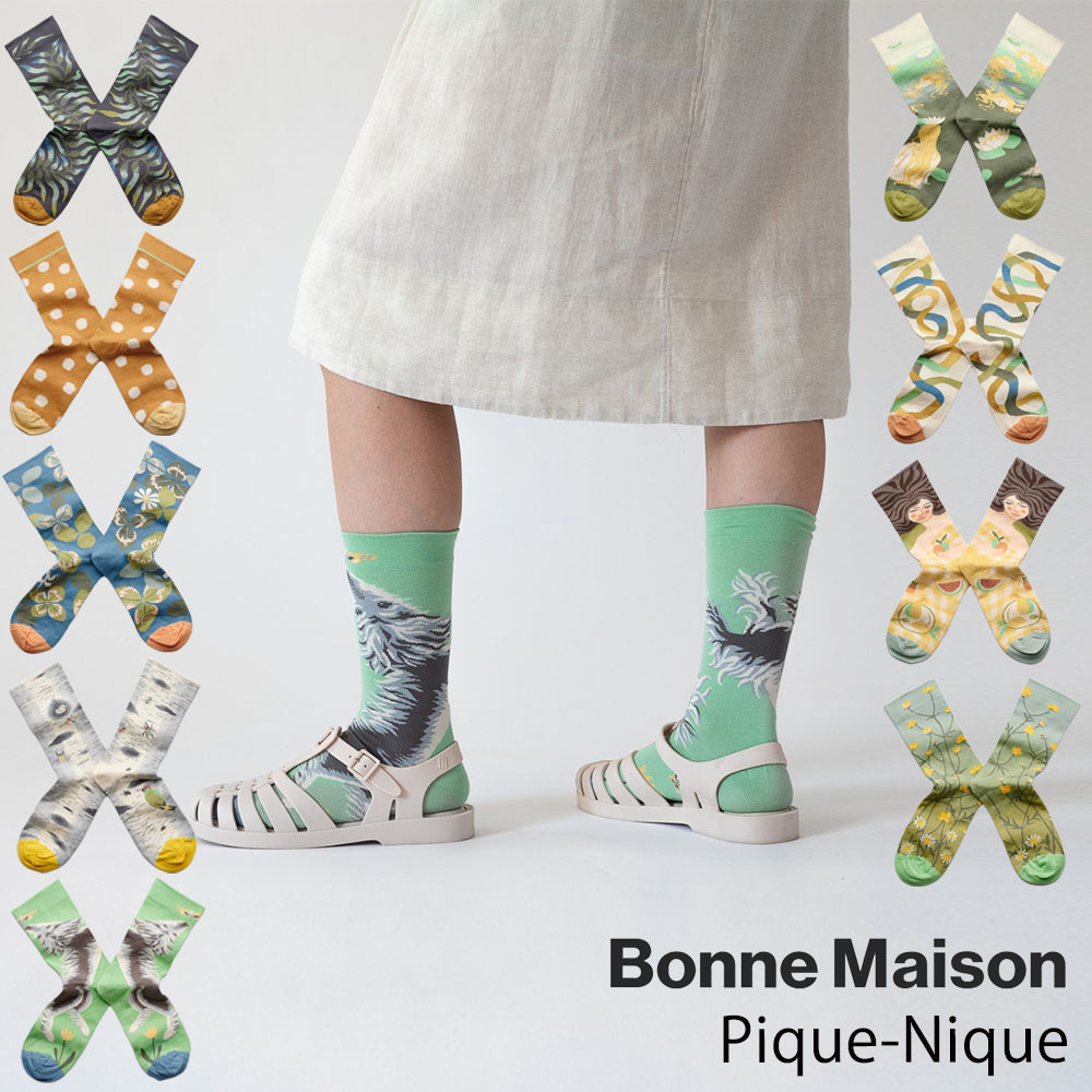 Bonne Maison/ボンヌ メゾンPique-Nique ピクニックフランス直輸入インポートコットンソックスレッグウェア2WAYストレッチMADE IN FRANC