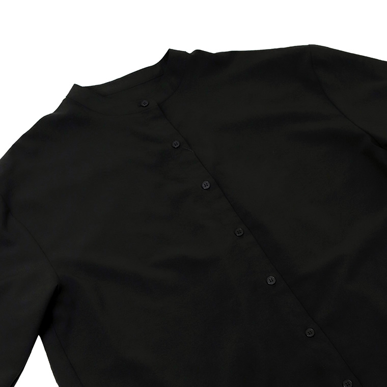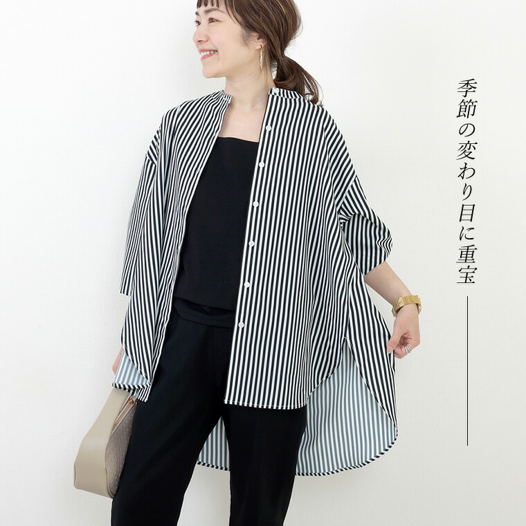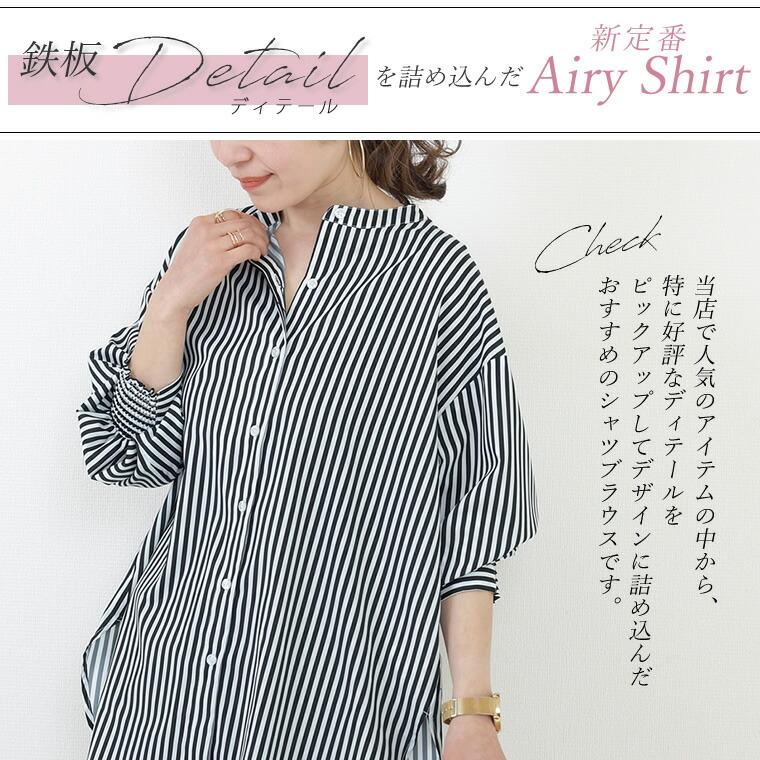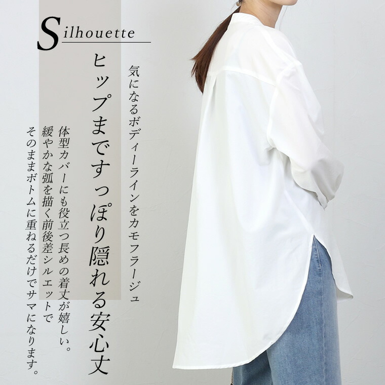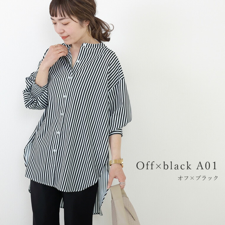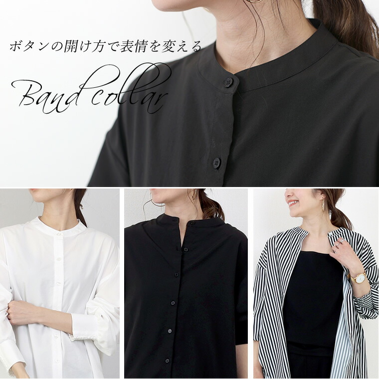 エステルローン袖シャーリングチュニックシャツ 【メール便可/ma1.5】シャツ チュニック ブラウス バンドカラー スキッパー シャーリング きれいめ マット 艶 大人 ローン 春 秋 30代 40代 レディース