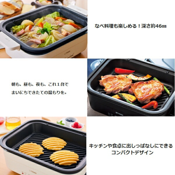 蓋付きのホットプレートがどうしても欲しくて探してたんだけど、最終的にこれに決定!コンパクトだし深型鍋もあるし、スタイリッシュだし、タイガーだし、価格も手頃。 餃子とかホットケーキとか、焼きたてをみんなで食べるんだー! おもてなしにも使う!