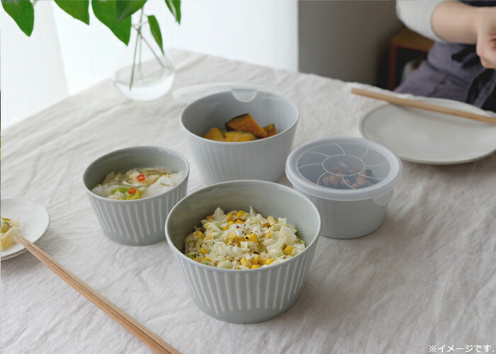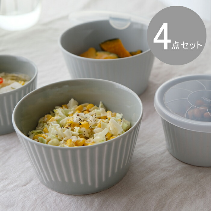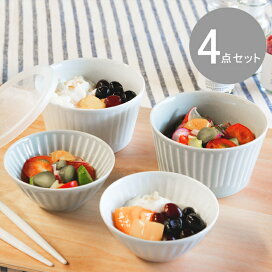 波佐見焼【花ふわり】レンジ鉢4点セット 保存容器 磁器 小鉢 はさみ焼 冷凍 電子レンジ使用可 おかず ごはん グレー ホワイト 贈り物 ギフト 新生活 セット