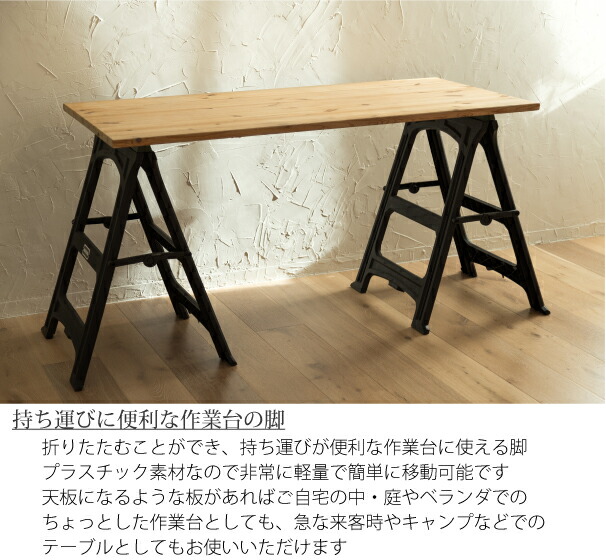 折りたためて移動も簡単に出来る作業台の脚。必要なときだけ使えるのは凄くいい!!