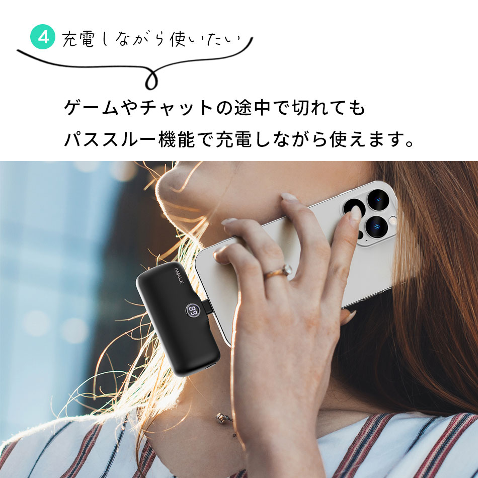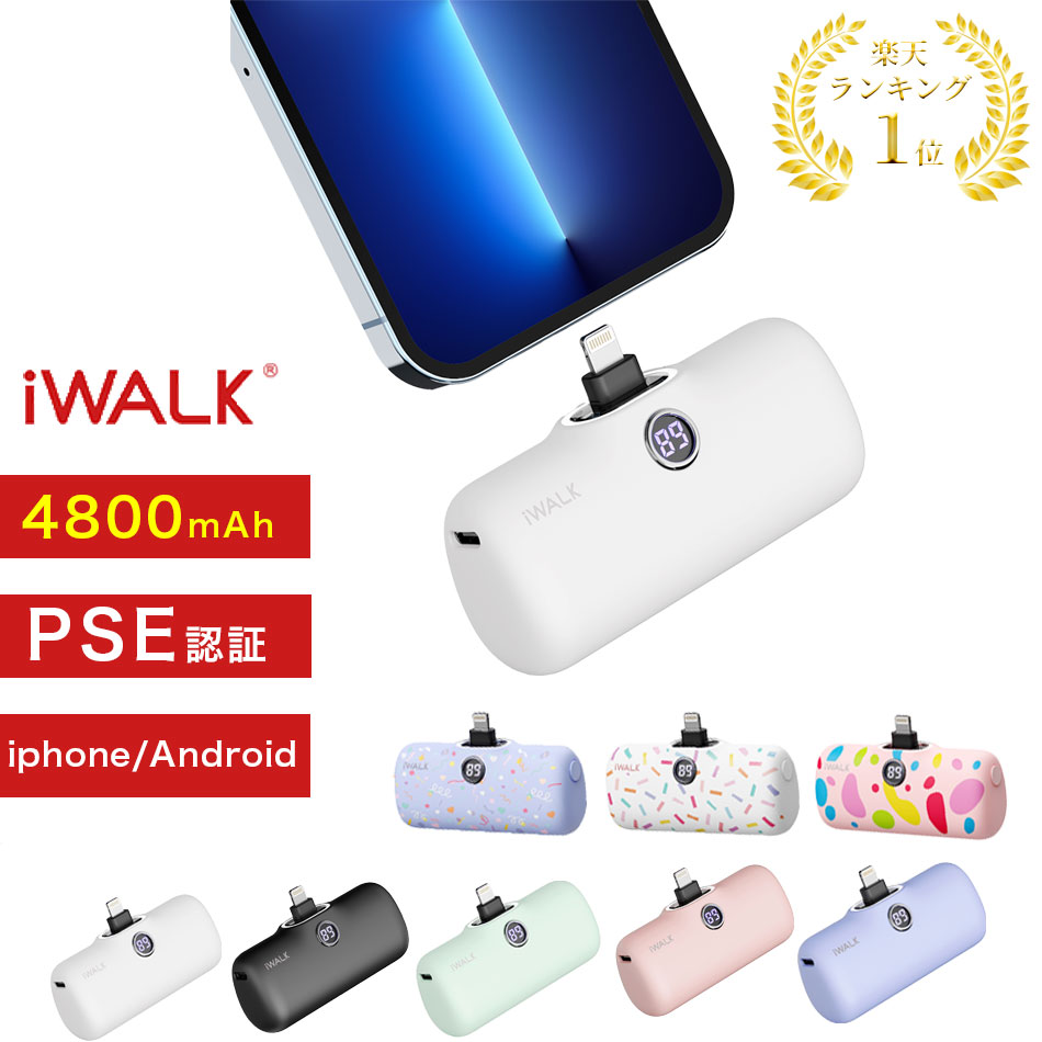 \ライトニング値下げ中/ モバイルバッテリー iWALK 軽量 小型 iphone ワイヤレス 充電 急速 全機種対応 イヤホン Lightning type-c 大容量 android アンドロイド iPhone15 15Pro iPhone14 14Pro Max iPhone13 13Pro Max se2 se xr ~ iPhone5 PSE 認証 4800mAh