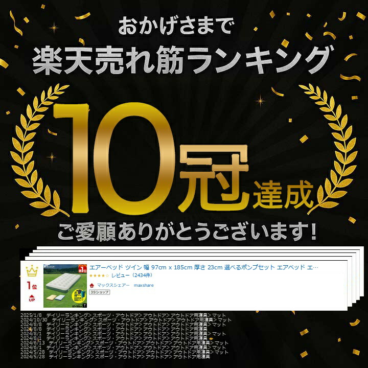 【楽天1位】エアーベッド ツイン 幅 97cm x 185cm 厚さ 23cm 選べるポンプセット エアベッド エアーマット エアーマットレス 電動ポンプ 空気入れ アウトドア マットレス エアマット 車中泊マット 車中泊 キャンピングマット FIELDOOR 1年保証 ★[送料無料]