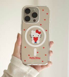 sanrio スマホケース これ可愛すぎました…!♥️ ✔︎ MagSafe対応 ✔︎ 変色しにくい ✔︎ iPhone、Galaxy対応 ✔︎ Sanrio LICENSE正規品 透明なので中の色変えて楽しめるのもいい👍🏼 赤ハートに合わせて、スキンシールはベージュにしました! この組み合わせめっちゃかわいくておすすめ♡