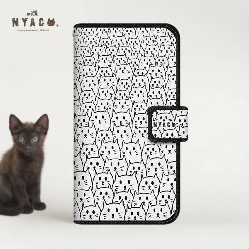 スマホケース 猫 手帳型 全機種対応 薄手【 キュート パターン NYAGOがいっぱい 】【with NYAGO】ねこ ねこ柄猫柄 猫 スマホケース 猫 柄 iPhone14 iPhoneケース 猫 可愛い スマホショルダー 猫 ネコ柄 動物 見ているだけで癒される♪可愛いNYAGOがいっぱいの猫柄スマホケースで気分も華やぐ。 全機種対応の手帳型タイプで、薄手ながらもしっかり保護。マグネット開閉で使いやすく、カード収納付きでお出かけにも便利。大人可愛いデザインはファッションの一部としても楽しめます。猫好きさんにぴったりの実用的でキュートなスマホカバーです。