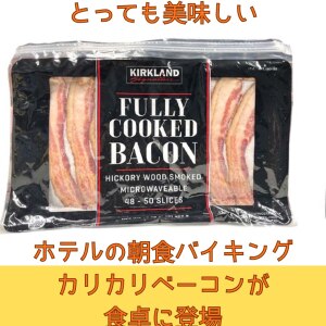 ホテルの朝食バイキングでお馴染みのカリカリベーコン。とっても美味しいのでついつい見つけたら買いたくなります❣️スクランブルエッグを添えて、アメリカンな朝食を🩷