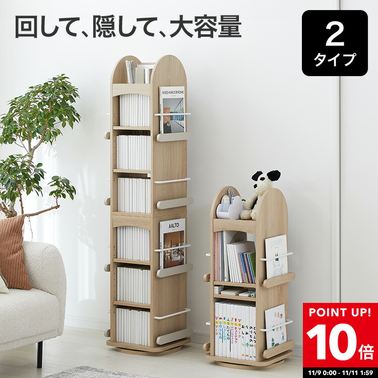 回転式本棚 本棚 収納 回転 絵本棚 ディスプレイ おしゃれ 大容量 木目調 回転本棚 回転ラック 絵本ラック 本 絵本 漫画 ナチュラルテイスト ランドセルラック コンパクト 省スペース 子供部屋 子供 子ども キッズ 回して隠して大容量の本棚です🤍 ´- 限られたスペースに置ける⸝⸝⸝ コンパクトでお部屋スッキリ𓂃 ◌𓈒𓋪 選べる2タイプ2カラー👍🏻