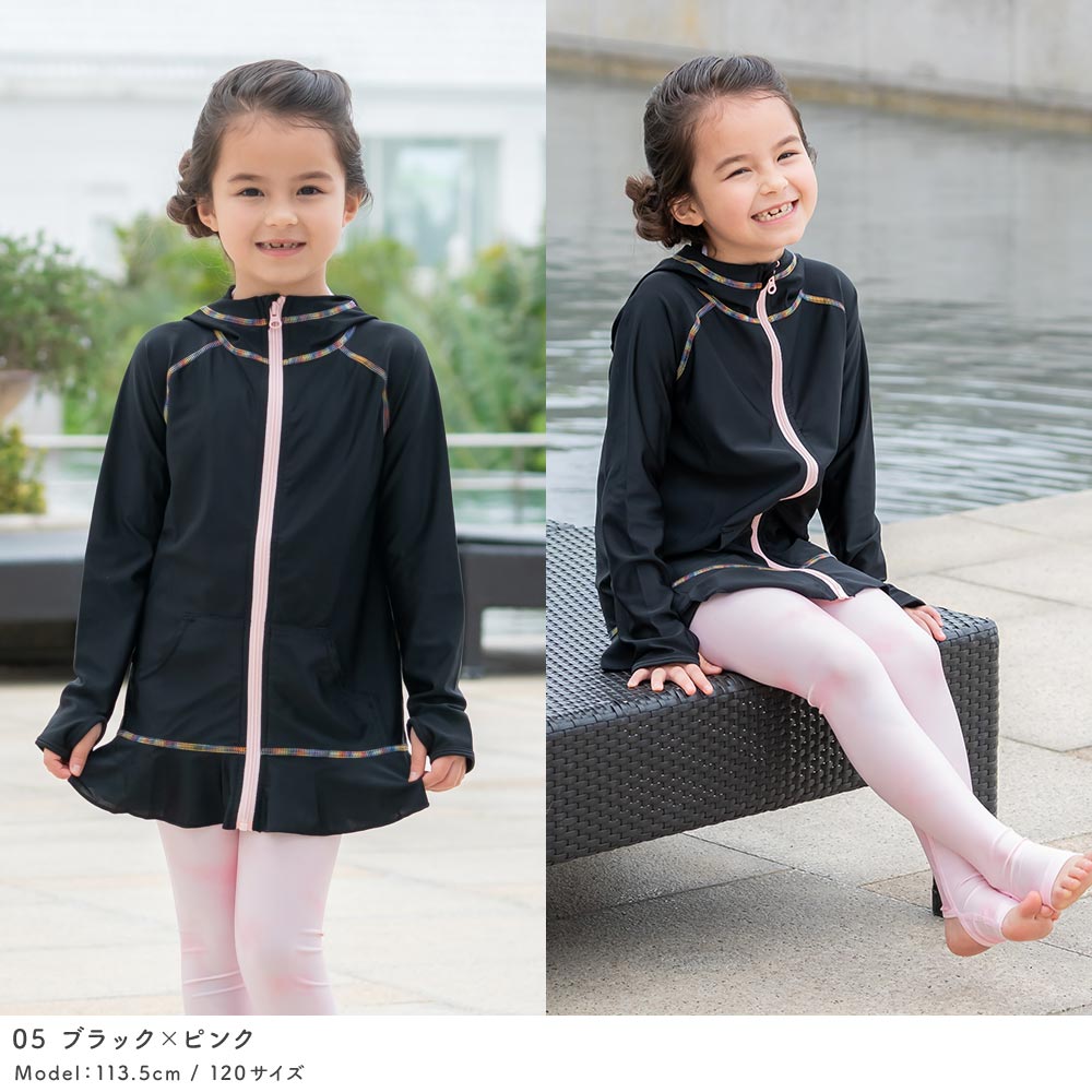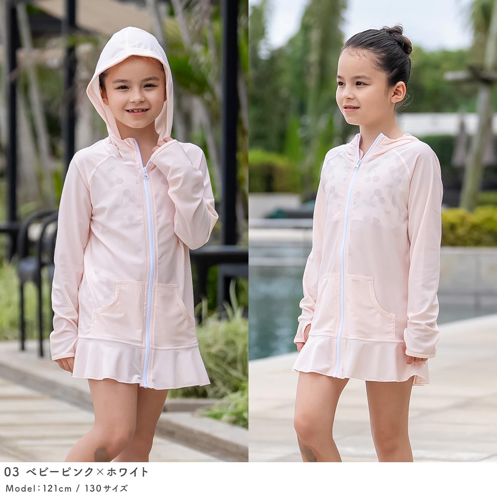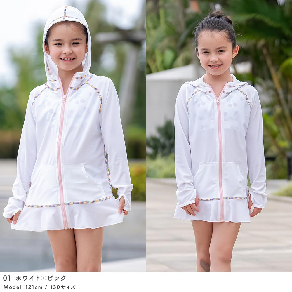 夏の日焼け対策は大丈夫ですか? パーカーとフリルがついたラッシュガード