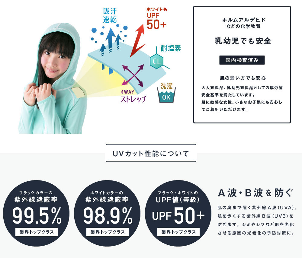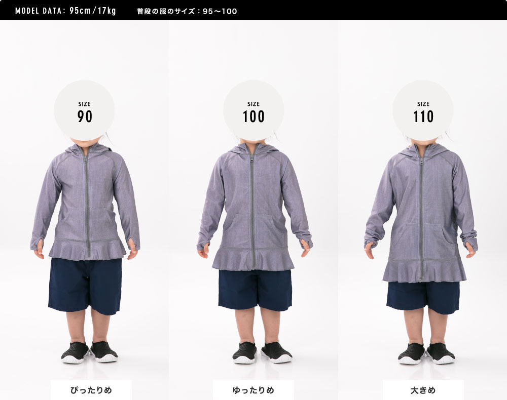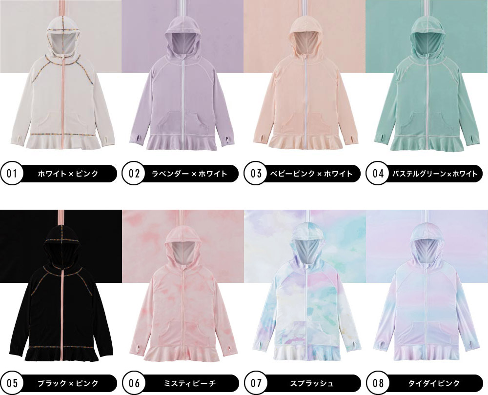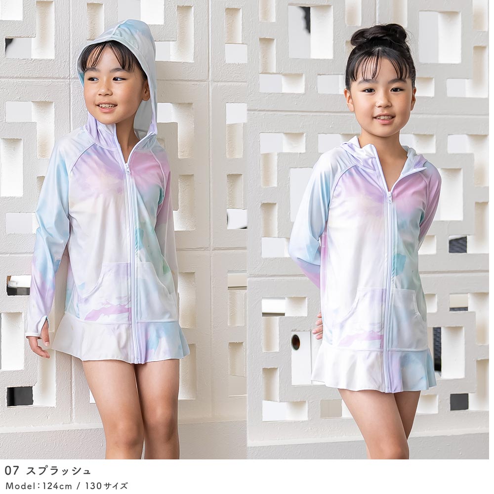 夏の日焼け対策は大丈夫ですか? パーカーとフリルがついたラッシュガード