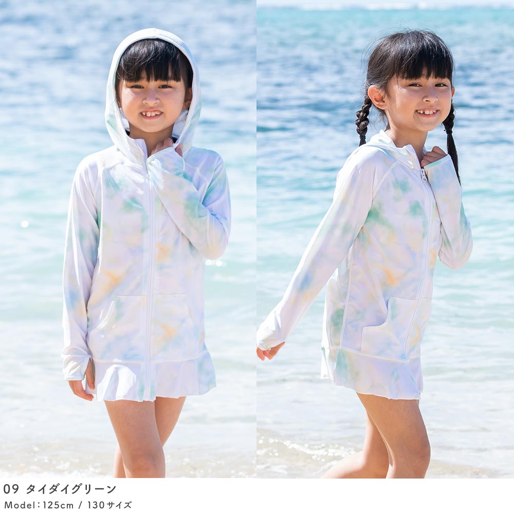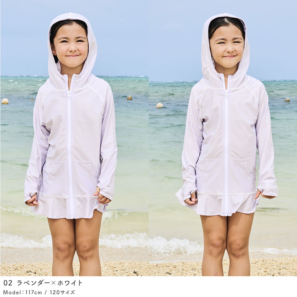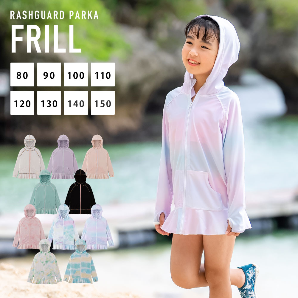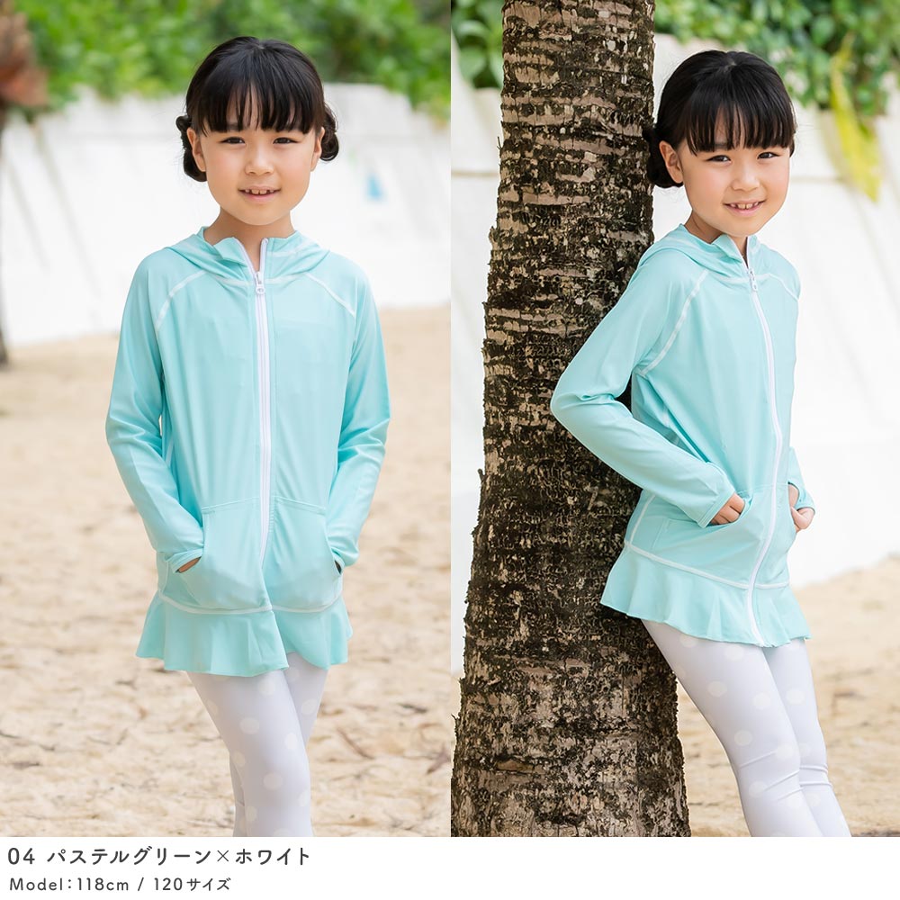 薄手でしっかりUVカット 涼感素材 ラッシュガード キッズ フリルパーカー 【土日祝も出荷】≪365日品質保証≫ 全色UVカット率98.9%↑ uvパーカー 水着 ベビー キッズ 男の子 女の子 レディース メンズ の サーフパンツ や トレンカ マリンシューズ リンネ