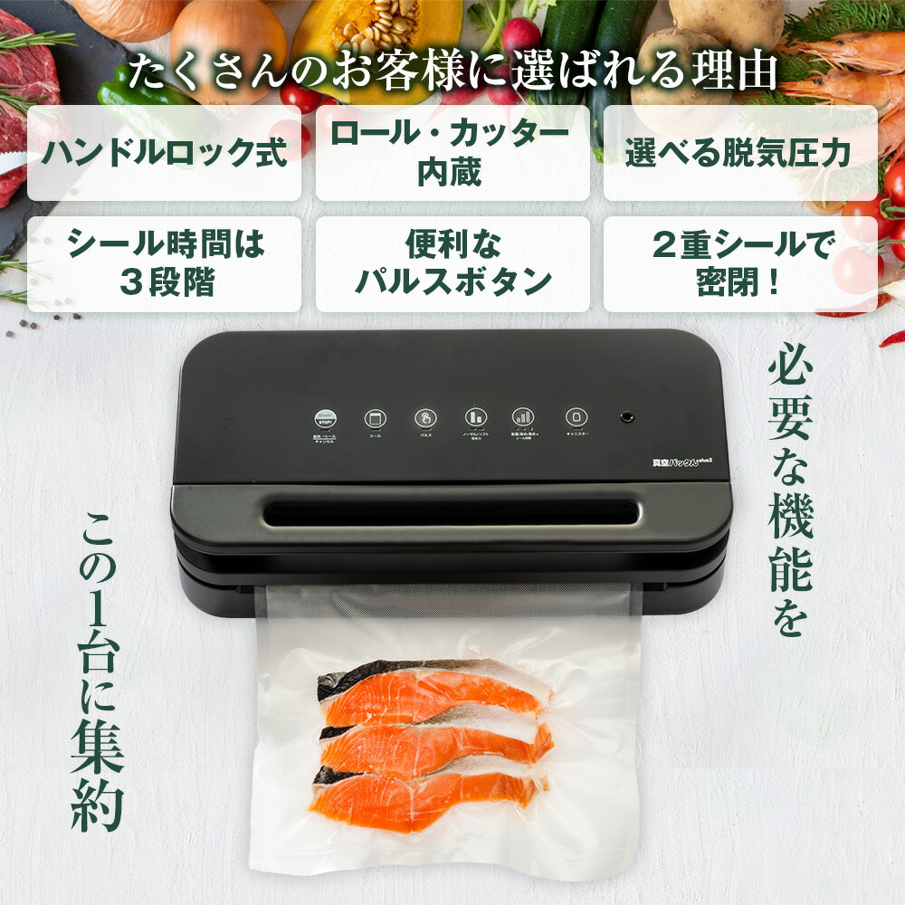 真空パック機 家庭用 カッター内蔵 ロール付き 真空パックんプラス2 公式 真空パック器 家庭用 真空パックんplus2 本体 食材 保存 真空保存 密閉 密封 ロール 時短 真空調理 低温調理 小分け 保存食 長期保存 作り置き 冷凍 送料無料【RSL】