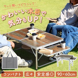 折りたたみ テーブル アウトドア ハンディーテーブル 63×63cm ピクジェネ ( 折りたたみテーブル 簡易テーブル 机 コンパクト ローテーブル 角型 レジャー ロータイプ ドリンクホルダー付き シンプル )