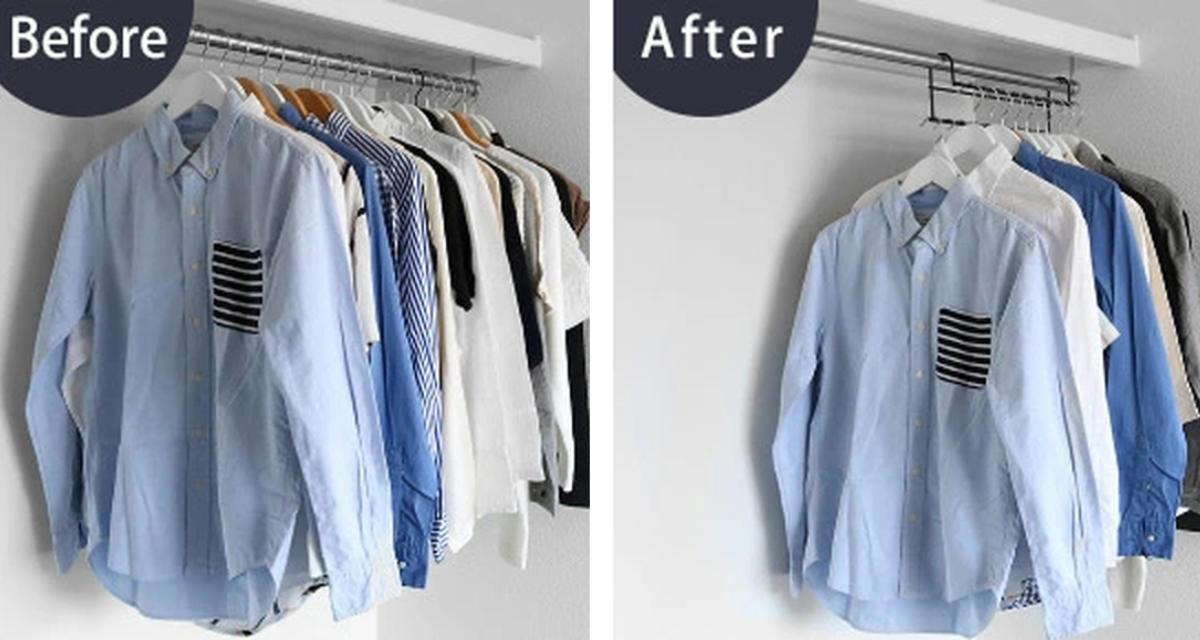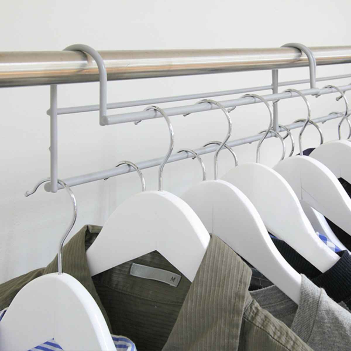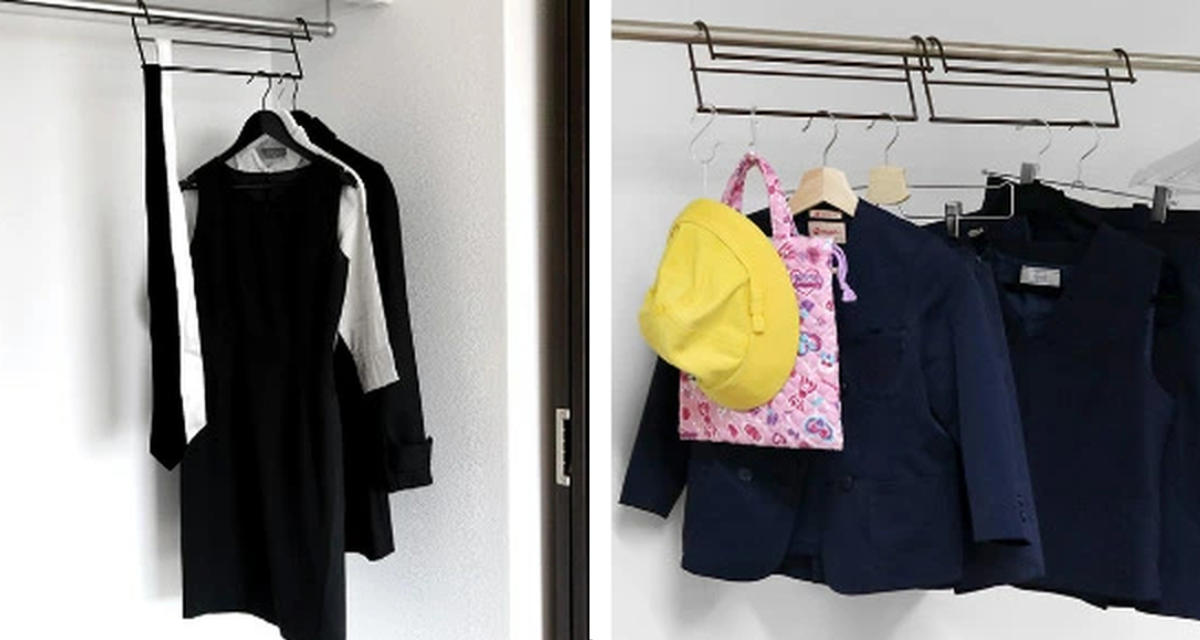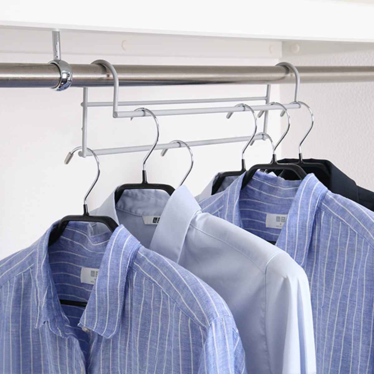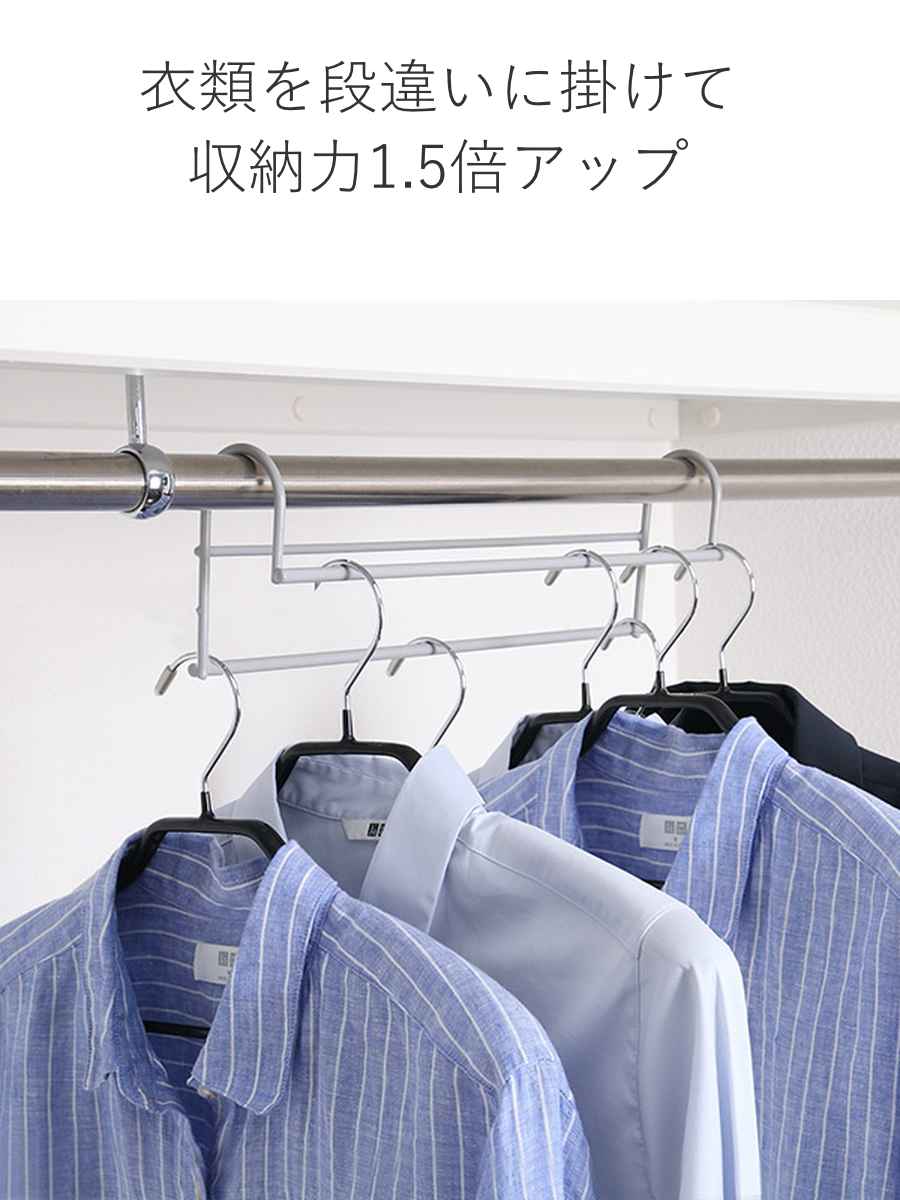 【当店限定カラー】ハンガー 衣類収納アップハンガー 幅35.5cm 2本組 ( 収納 衣類ハンガー ハンガーラック コート収納 段違い コート掛け 日本製 パイプハンガー クローゼット 整理 省スペース 洋服 衣替え 礼服 制服 )