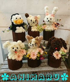【peluche プルッシュ】 【送料無料】アニマルアレンジ アーティフィシャルフラワー(造花) 動物 アレンジ ウサギ 猫熊 アヒル 犬 とっても可愛い メモリアル 公演・楽屋見舞い【ギフト】【楽ギフ_包装】【楽ギフ_メッセ入力】P27Mar15