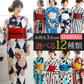 浴衣 セット レディース 作り帯 今だけ4点SET 【即納】 レトロ 女性 ゆかた ユカタ 半幅帯 帯 レトロ 水玉