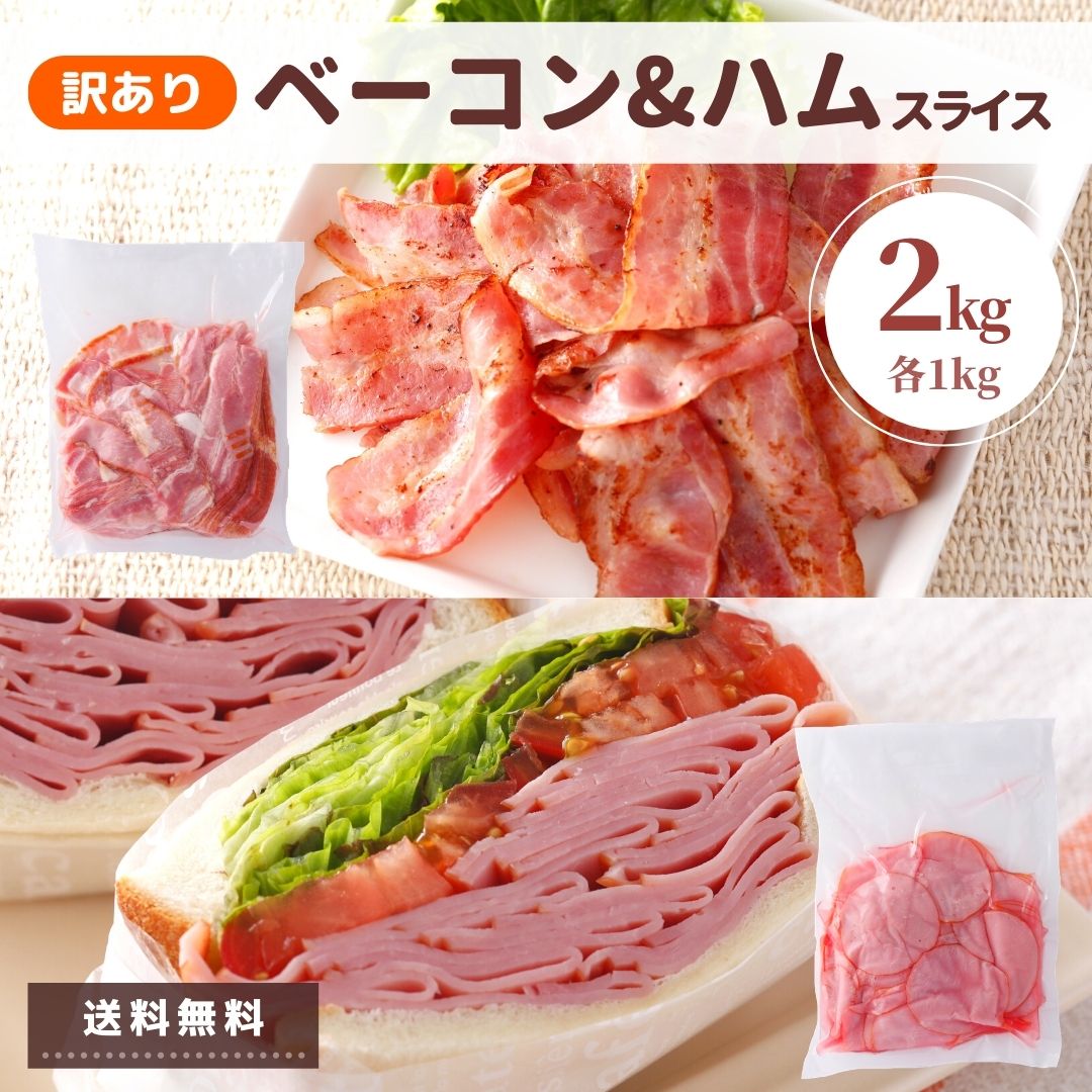 ベーコン ハム セット 2kg 訳あり 業務用 切り落とし 送料無料 切落し ロースハム スライス アウトレット 不揃い 大容量 国内製造 冷蔵 福袋 肉 豚ばら 豚ロース 豚肉 詰合せ お弁当 おかず お惣菜 まとめ買い 食品