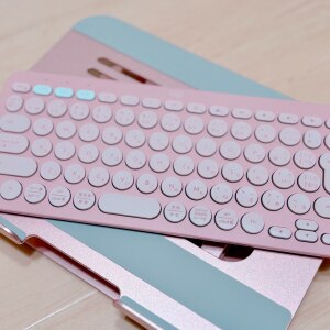 ぴんくでかわいいデスクまわり…🤍 静かでかわいいキーボードでお仕事したいと思って購入しました💬 本当に音も静かだし、コンパクトで持ち運びもしやすい(´,,•ω•,,`) 毎日のお仕事にときめきが欲しい方におすすめ🤍