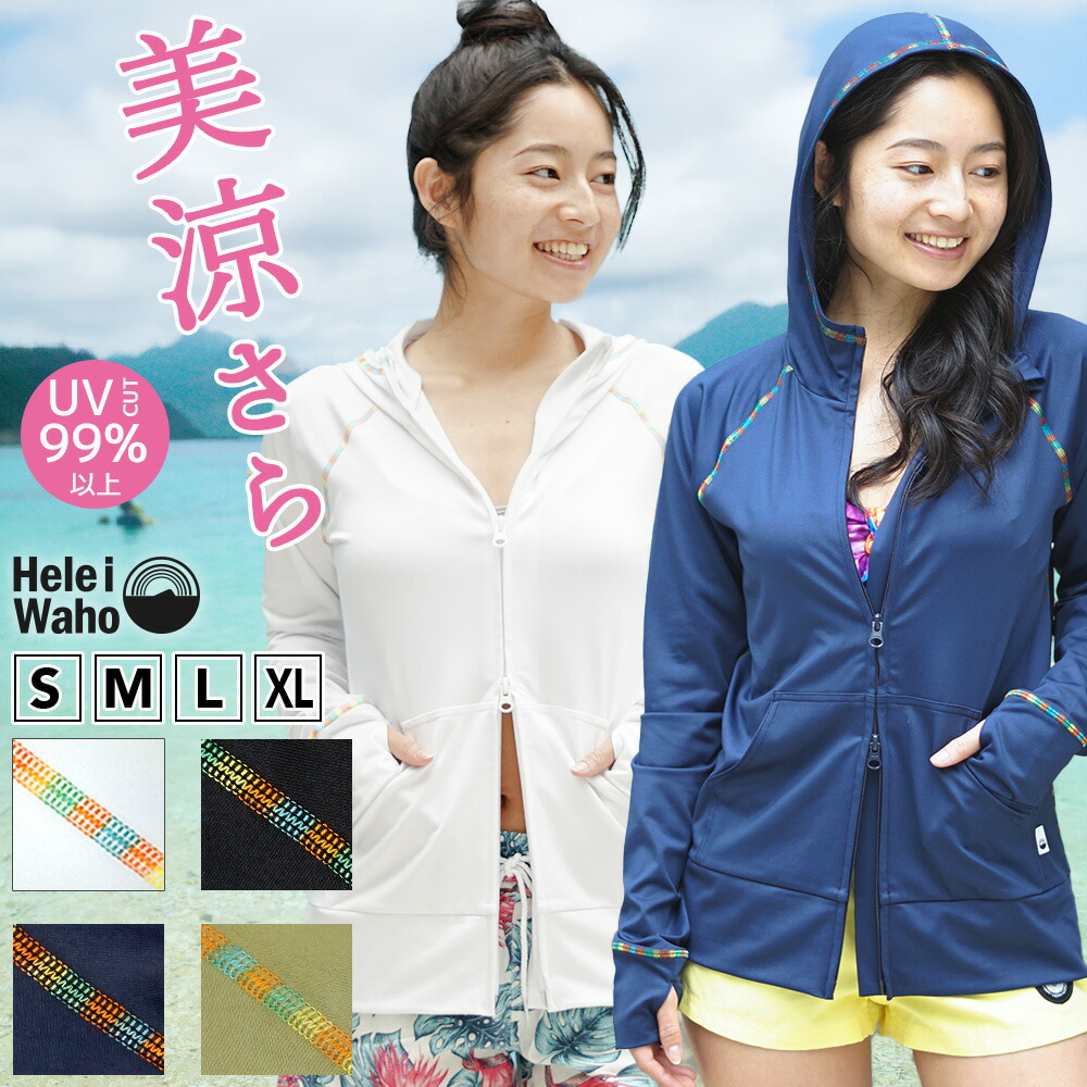 ラッシュガード レディース パーカー ラッシュパーカー フード付き 長袖 水着 透けにくい UVカット UPF50+ 涼感素材 冷感 体型カバー 紫外線対策 日焼け予防 シュノーケリング 海 プール ランニング HeleiWaho ヘレイワホ 夏休み 海水浴