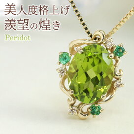 猫 ペリドット ネックレス 10k/18k K10/K18イエローゴールド 18金 レディース ネコ キャット 8月誕生石 大粒 リボン ペンダント「フェレース」誕生日プレゼント ギフト 女性 妻 嫁 20歳 20代 30代 40代【K18YGのみ在庫あり】