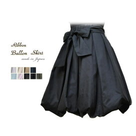 日本製 スカート バルーンスカート レディース 女性 婦人 ふんわり ひざ丈 膝丈 ミモレ丈 グログラン フェミニン リボン ウエストゴム 大人 かわいい 上品 シンプル きれいめ タフタ オフィス 結婚式 卒業式 卒園式 入学式 入園式 秋 冬 30代 40代 50代 60代 おしゃれ x1x