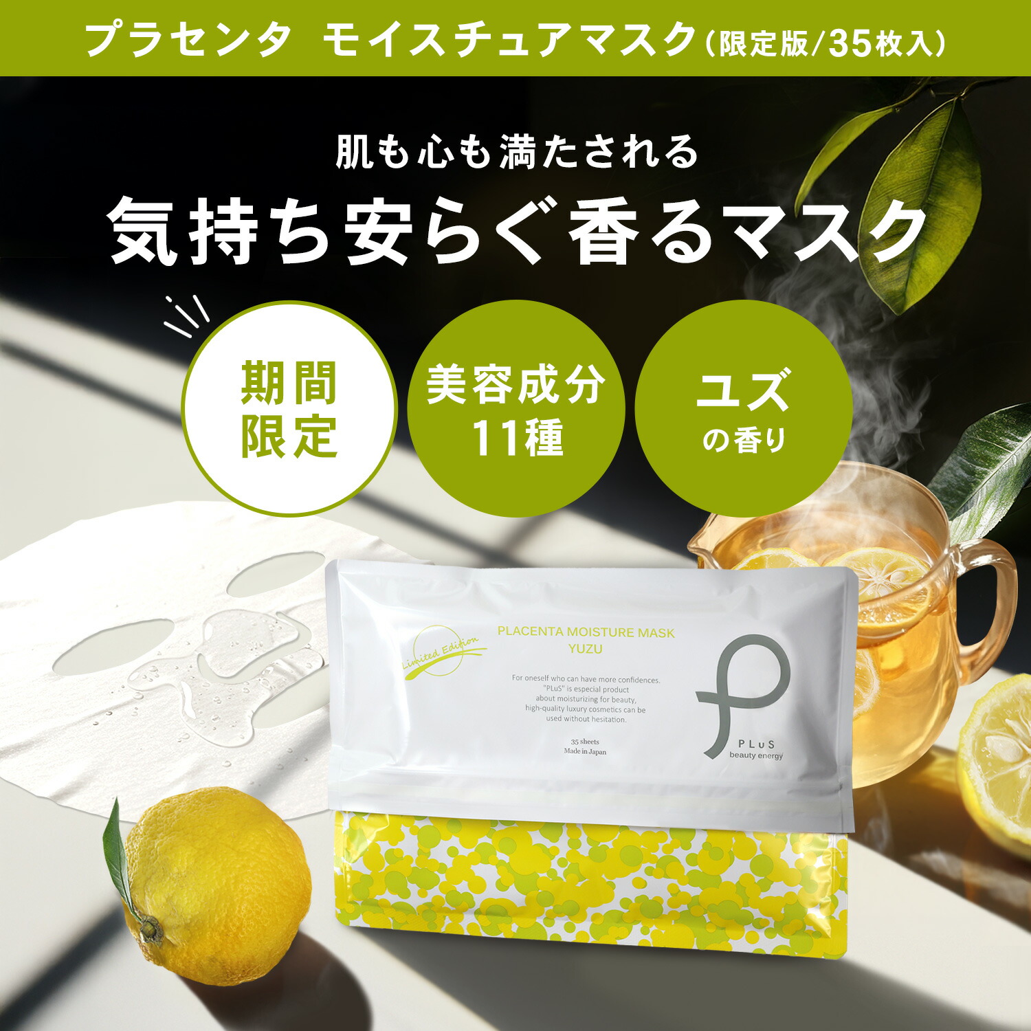 【クーポンで25%OFF】パック シートマスク フェイスパック シートパック フェイスマスク 大容量 美容 保湿 透明 毎日 顔 冬 デイリー メンズにも ランキング プレゼント[PLuS / プリュ プラセンタ モイスチュアマスク 35枚入 ] ZZ プリュ公式