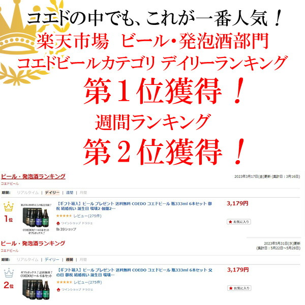 【ギフト箱入】【送料無料】COEDO コエドビール 瓶 333ml 6本セット ギフト 父の日 母の日 お中元 お歳暮 ごほうび