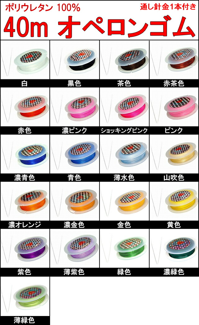 ≪40m・オペロンゴム(新)ブレスレット用 通し針金付き≫●ポリウレタン100%●シリコンゴム●繊維入り●伸びるゴム●さけるゴム●ブレスレット制作に●水晶の線●天然石・パワーストーン用