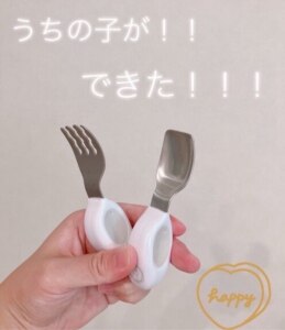 息子が1歳4ヶ月の頃 中々スプーン、フォークを使ってくれず、、、悩んでいました。そんな中、こちらのレビューが良かったので試しに買ってみました。そしたらびっくり、にこにこしながらおそるおそるスプーンを持ってお口にパクっ!😭びっくり!! 嬉しすぎました!!! 素晴らしい商品🙌
