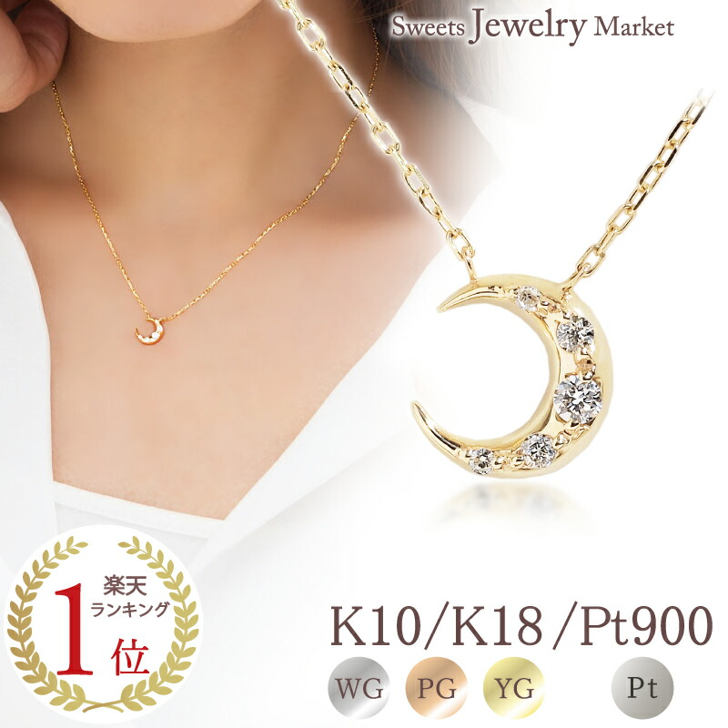 \7%OFFクーポン対象 2点購入16日迄/ ダイヤモンド 0.07ct ムーン ネックレス あす楽 10金 10K K10 18金 18K K18 | ダイヤ 三日月 上弦の月 月 星 アクセサリー レディース 女性 プレゼント プラチナ ピンクゴールド ゴールド 記念日 誕生日 可愛い 金属アレルギー 安心