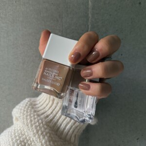 いやこれめちゃくちゃいいええ色。ブラウンコンビ、キャラメル色の方しか塗ってないけどいいですよ。オフィスでも問題無さそうな品のある感じ。 さすがネイルズインクでスルッと一筆で綺麗に広がりながら塗れて速乾、不器用さんも安心。2度塗りしてます。明日はラメも試しみよう。グレージュっぽいのもシックで良さげ。楽しみ。 トップコートも塗ってます。こちらもありがた速乾でちゅるん仕上げ。あとベースもネイルズインク。ベースもすごくいい仕事するのよ、ナチュラル派はベースだけでもいいと思ってる。