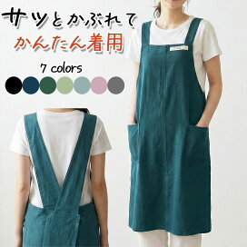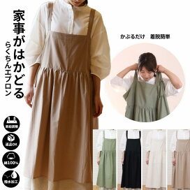 エプロン かぶるだけ 紐なし 大きいサイズ 対応 おしゃれ 無地 ロング | かぶり ゆったり メンズ 大人 北欧 ワンピース シンプル ナチュラル 長め 店 保育士 飲食店 サロン トリミング