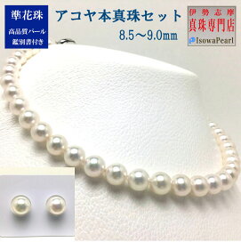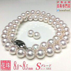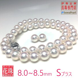 花珠真珠 ネックレス セット 8.0-8.5mm 【老舗の真珠専門店が厳選】 ハイクオリティ花珠 SA 花珠鑑別書付 パールネックレス 真珠 ネックレス パールピアス イヤリング (パール ネックレス 真珠ネックレス レビュー 高評価)